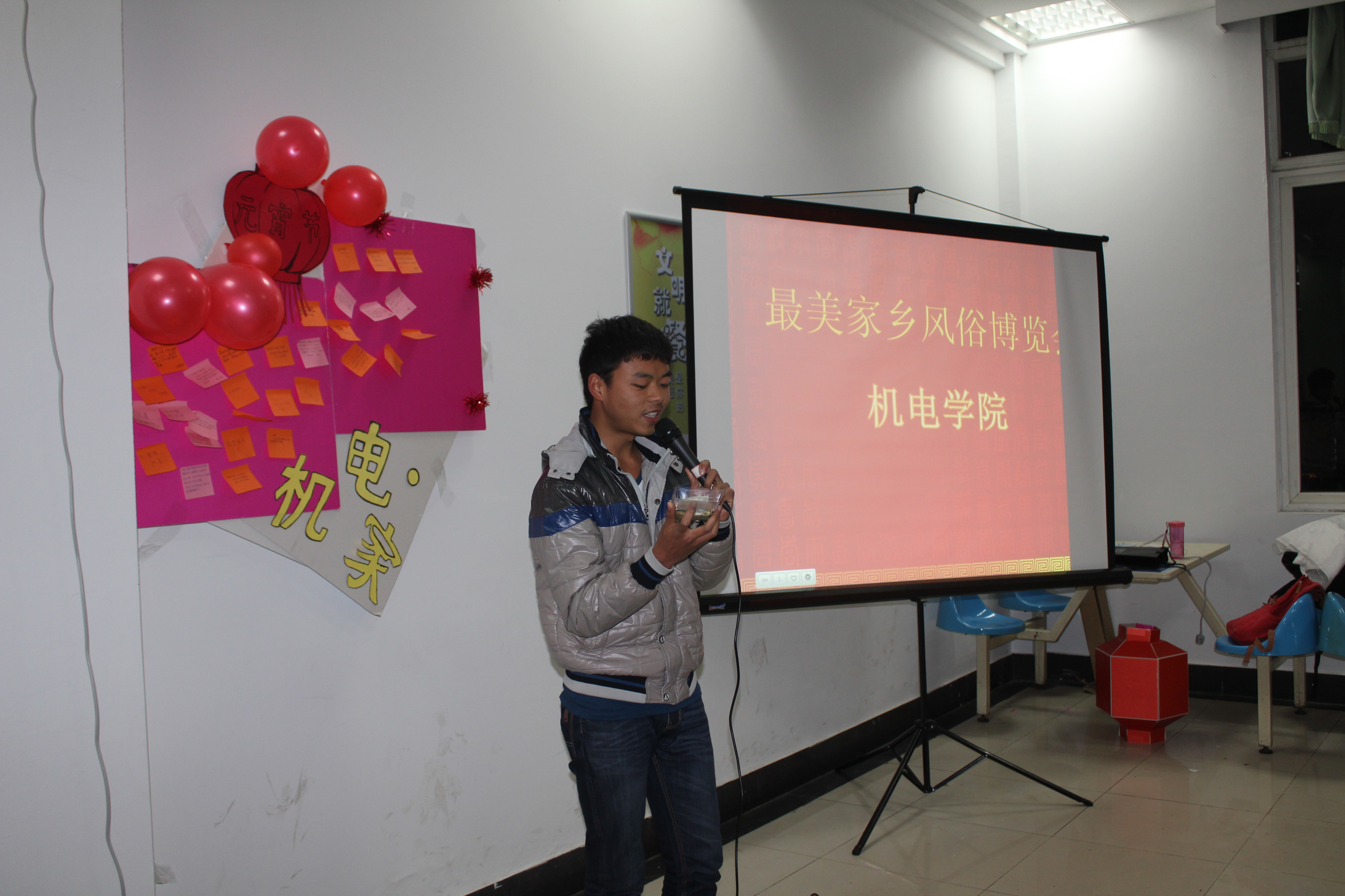 3月4日晚,机电学院“机扬新帆贺新春,师生欢喜闹元宵”活动在江宁校区三食堂一楼圆满举行。院党委书记陈文亮、党委副书记许赞、班主任代表沈建新、王宏涛、各年级辅导员及2013、2014级两百余名学生共聚一堂,一起庆祝元宵佳节。