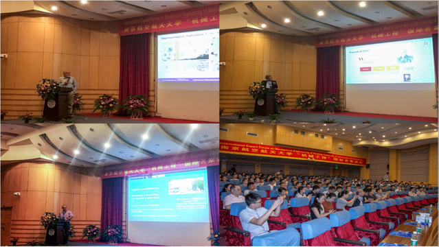 德国不莱梅大学Ekkard Brinksmeier教授结合其在材料制造、加工友好环境、加工过程的建模和仿真以及超精密加工等方面的研究,介绍了在制造过程中的材料特性与表面完整性的相关研究;匈牙利布达佩斯技术与经济大学Gabor Stepan教授从力学系统动力学与控制的研究角度介绍了未来机械学科的发展方向与改革措施,指出了机械工程仍然是我们未来技术发展的动力;新加坡国立大学Andrew YC Nee教授围绕工业4.0以及3D打印等前沿方向的研究成果详细阐述了机械未来的发展趋势;不列颠哥伦比亚大学Yusuf Altintas教授以数字制造为主题分享了其在数字制造技术在金属切削、机床振动、控制和虚拟加工等领域的应用与发展;美国西北大学Kornel Ehmann教授分享了多尺度的先进制造工艺技术以及数字化制造技术的研究成果;丹麦技术大学Hans Noergaard Hansen教授以数字化制造以及工业4.0为例,详细阐述了智能制造在微细领域的应用;比利时鲁汶大学Dominiek Reynaerts教授介绍了数字化制造和智能制造的前沿应用与发展。