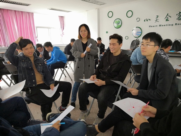 活动开始前,为了拉近与参与学生的距离,营造轻松欢乐的辅导环境,葛未央老师首先向各位同学介绍了个人履历与此次团体辅导的主题。他介绍道,本次心理辅导主要是帮助同学们学会释放内心的各种压力,从而树立阳光、健康的心理状态。他希望,本次活动能发挥研究生骨干的带动作用,在开展学生工作时,一方面能够处理好工作与学业、生活的关系,另一方面能够掌握团体辅导的方法,更好地开展内部团队建设。