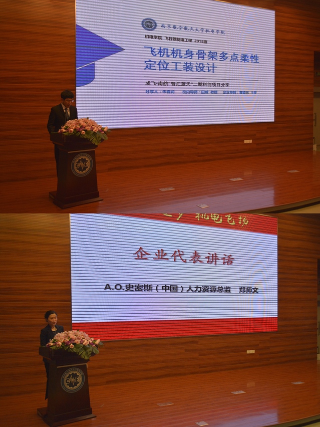 万众支持,职途未来,校企协同形成合力助力人才培养。长期以来,学院与社会各界一直保持密切联系,重视校企合作,拓展育人力量。目前,黄色动漫 拥有昌飞、成飞、沈飞、汉中零组件及A.O.史密斯等5个校企俱乐部。其中成飞俱乐部成员朱春润作为代表讲述了他的科研故事,介绍了在成飞公司的实地调研,分享了在项目完成过程中的思考与感悟,激励更多机电学子加入校企俱乐部,将理论知识与实际生产情况相结合,为祖国的航空事业贡献青春力量。随后,其他4个校企俱乐部也形式各异地展示了学院校企俱乐部的风采。紧接着,A.O.史密斯(中国)人力资源总监郑师文作为企业代表发表讲话,她通过一组数据回顾了A.O.史密斯与南航的合作历程,对机电学子给予了高度的肯定和赞扬,表示未来欢迎更多的机电学子加入A.O.史密斯,还将进一步深化校企合作,通过多元化的渠道和措施助力我校人才培养。