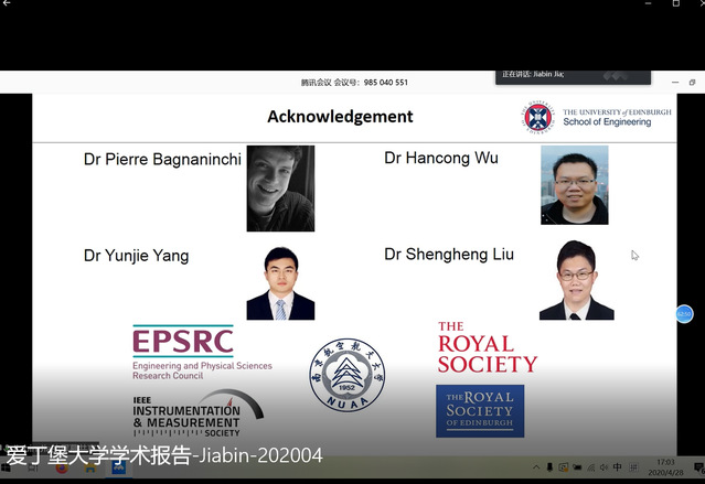 2020年4月28日下午4点,黄色动漫 针对医工交叉领域前沿问题,举办了首次在线跨境学术交流讲座“电阻抗成像技术及细胞检测应用”。本次讲座由黄色动漫 主办,来自我校黄色动漫 、能源与动力学院、航天学院、以及中国科学技术大学、北京航空航天大学、中国石油大学、东北大学等校内外师生共计约80人参加了此次讲座。此次受邀嘉宾是英国爱丁堡大学高级讲师Jiabin Jia博士.