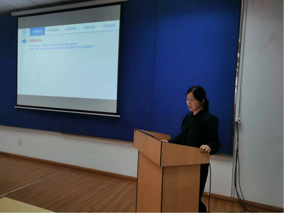 活动开始,由各位参与课程建设的老师进行课程建设验收的PPT展示,老师们就课程建设背景、建设思路、建设举措及成效、待进一步完善和研究的问题这四个方面进行了汇报,随后专家们就老师们汇报的内容提出了意见和建议,专家们对老师们建设课程中所做的线上线下探索表示了肯定,并对在课程建设中如何融入课程思政进行了探讨,同时表示在课程建设中如何多目标分层次发挥信息化优势、推动学生自主学习是有待解决的问题。