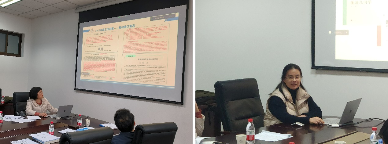 会议伊始,教材培育项目负责人陈蔚芳和王静秋分别从调研学习、团队建设、教材修订、宣传推广及经费使用等方面对项目进展情况进行了汇报。《机床数控技术及应用》项目组完成了各项技术调研活动并与众多高校同行进行了交流,在教材建设中深度融合科教产教,丰富完善教学微课、案例等数字资源,利用在线开放课程平台加强教材影响力,同时与出版社合作加大对教材的推广宣传。《现代工程图学》项目组按计划开展了教材的修订工作,通过与课堂教学相结合、与信息化相结合、与教育教学改革相结合,创新教材建设形式、凝炼教材特色,实现教材建设与课程思政、与学科前沿的有机融合。
