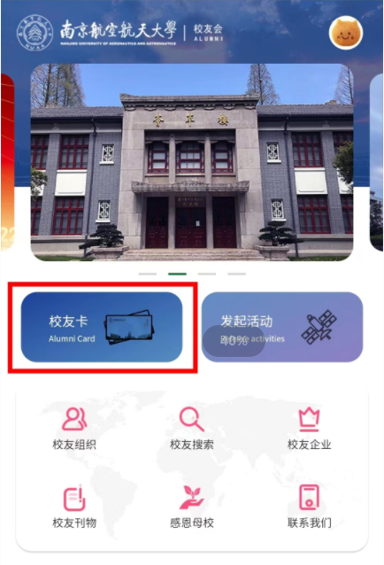 电子校友卡是面向南航校友发行的实名制卡,是校友身份的象征,具有纪念意义和服务功能。电子校友卡具备校门门禁识别、图书阅览、校内食堂及教育超市消费等功能,欢迎校友们办理电子校友卡,我们会在7个工作日内完成审核。