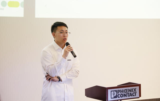 智能教育市场和项目工程师赵欣怡热情地接待了队员并为同学们介绍了菲尼克斯百年来的历史征程,讲述了菲尼克斯电气一直以来携手客户和合作伙伴不断研发创新产品,助力万物互联同时积极推进电气化社会的转型。为实现“双碳”发展目标,打造绿色世界而努力。