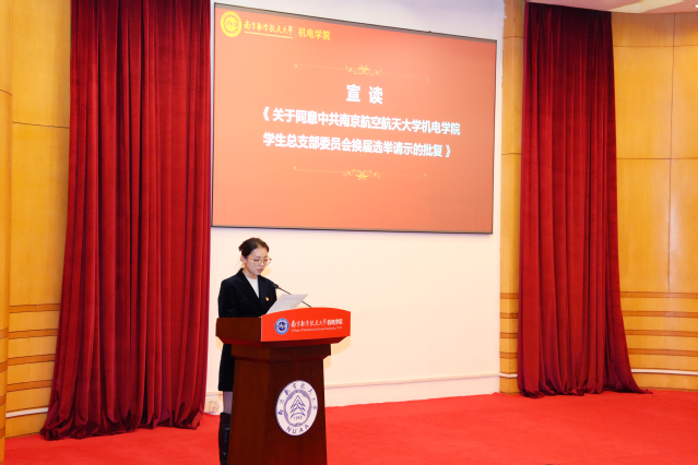 昂洋代表学院党委宣读《关于同意中共黄色动漫 学生总支部委员会换届选举请示的批复》。