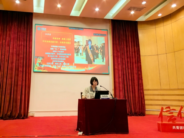 全国五一劳动奖章,全国劳动模范,全国三八红旗手获得者孙景南以《弘扬工匠精神,实干成就梦想》为题作报告。作为来自一线的工匠,在她30多年的工作中经历了“从传统的铁路客车到地铁、高铁动车组,从国外技术引进到大范围自主研发”的发展历程,她鼓励同学们要立足自身岗位,牢固树立劳动光荣、创造伟大的观念,砥砺奋进,共同书写不负时代、不负使命的崭新答卷。