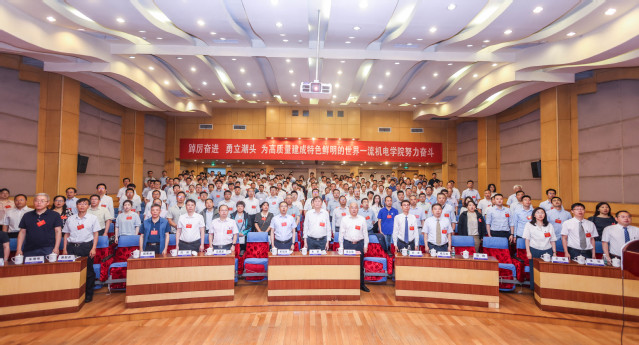 黄志球代表学校党委向大会的召开表示热烈祝贺。他对2018年以来学院党委取得的成绩给予充分肯定。他强调,学院党委要坚持以党的二十大精神和习近平总书记致南航建校70周年重要勉励精神为根本遵循,认真落实学校第十七次党代会决策部署,准确把握“三个”注重战略的内涵和要求,抢抓机遇、乘势而上,不断开创工作新局面,为学校事业高质量发展作出新的更大贡献。同时,他对学院今后的工作提出三点希望:一是把牢政治方向,持续推动学院建设成为坚持党的领导的坚强阵地,全力推动党纪学习教育与学院发展同频共振,将党的全面领导贯穿落实到立德树人的全过程、各方面。二是坚持立德树人,持续推动建设拔尖创新人才主阵地,打造一流本科教育和卓越研究生教育,全面深化教师思政工作和师德师风建设,加快打造高水平师资队伍。三是服务国家战略,持续推动高质量科技和人才供给,大力推进关键核心技术攻关,加快建设高水平人才高地,为加快建设“三航”领域和“两个强国”建设的人才中心和创新高地贡献源源不断的机电力量。