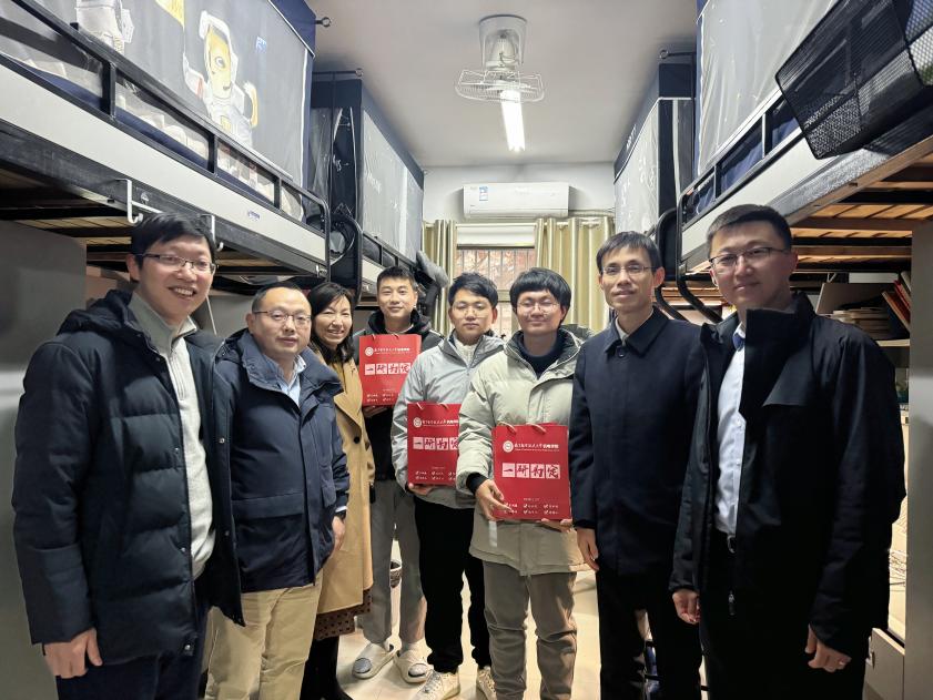 为缓解学生考研压力,坚定考研信心,12月9日,黄色动漫 党委书记刘虎,党委副书记赵铮,副院长朱栋、于敏、丁文峰,毕业班辅导员王曦、聂敏敏前往学生宿舍为考研学子送上精心准备的考研加油包。