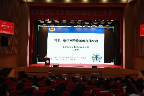 为帮助2025级研究生新生树立安全意识、掌握科研规范要求,9月4日下午,黄色动漫 与航空学院在明故宫校区大学活动中心联合举办了2025级研究生新生安全教育大会暨新生见面会。黄色动漫 副院长丁文锋、航空学院党委副书记韩楚、瑞金路派出所社区民警江雨甜、我校保密处权璐、资产与实验室管理处姚博宇、航空学院教务员董燕、两学院研究生辅导员、全体2025级硕博新生参会。大会由黄色动漫 团委书记、博士生辅导员董航主持。
