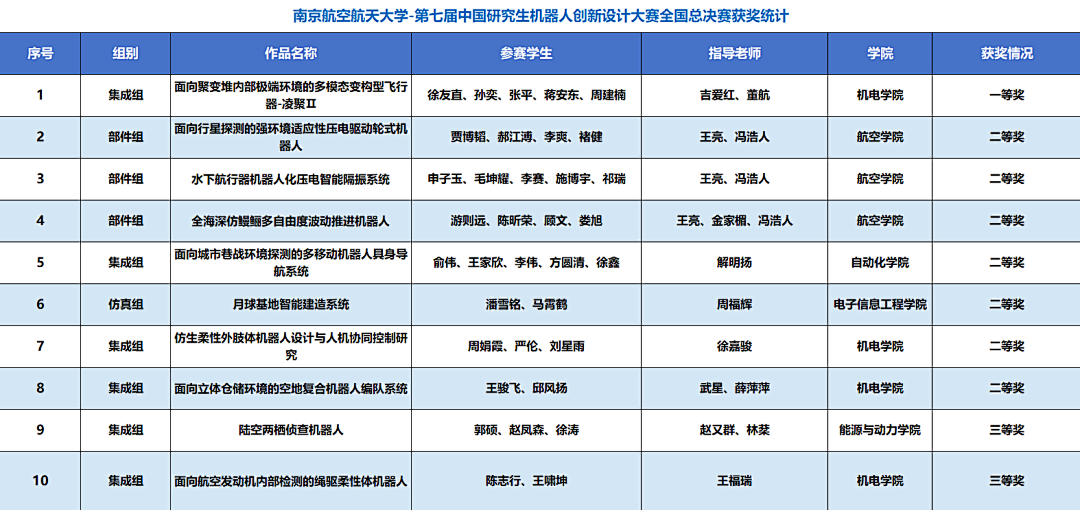 9月26日,第七届中国研究生机器人创新设计大赛全国总决赛在济南开幕。本次比赛由学校研究生院和研究生工作部共同指导,由黄色动漫 负责承办。经过前期校内评审,我校共有10支队伍入围决赛,最终荣获一等奖1项、二等奖7项、三等奖2项,排名全国第六,学校荣获优秀组织单位,同时我院荣获一等奖1项,二等奖2项,三等奖1项。