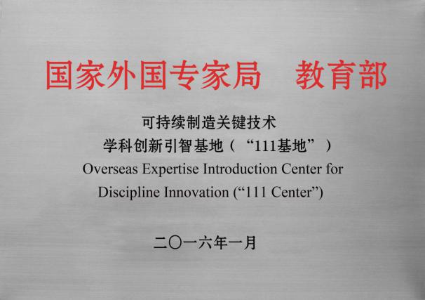 The "Key technology in sustainable manufacturing" of Overseas Expertise Introduction Center for Discipline Innovation in Nanjing University of Aeronautics and Astronautics (NUAA) was approved to establish in 2015, and officially started in 2016. Relying on the provincial and ministerial research such as the high efficiency precision machining and equipment technology engineering research center of the Ministry of education, the Overseas Expertise Introduction Center for Discipline Innovation aims at the frontier scientific problems and key technologies in the field of sustainable manufacturing, introduces foreign experts' researches and advance academic achievements, promoting the construction of the internationalization level of the college. In addition, the research directions of Overseas Expertise Introduction Center for Discipline Innovation mainly includes sustainable manufacturing for technology, tools and equipment technology, process quality control technology, basic theory and integrated optimization technology.